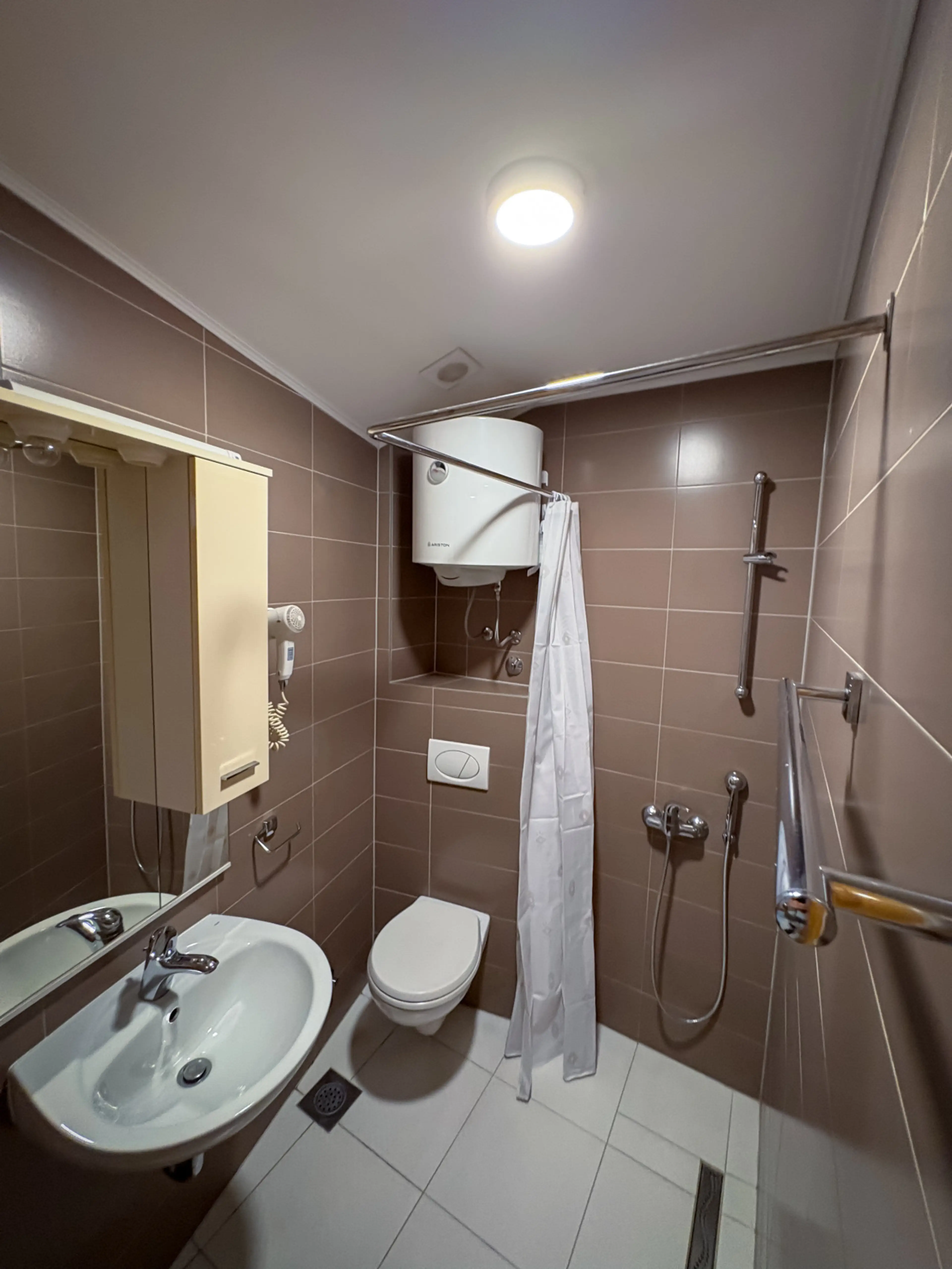 Negative: Les chambres ne sont pas lumineuses, je me sentais à l’étroit étouffé, la chambre était petite et le salon n’était pas inclus avec la chambre, c’était un salon commun avec les autres ce que je n’avais pas compris quand j’ai réservé donc j’ai été déçu. De plus après deux douches il n’y avait plus d’eau chaude. À notre arrivée il y avait des poils et des cheveux dans la salle de bain.